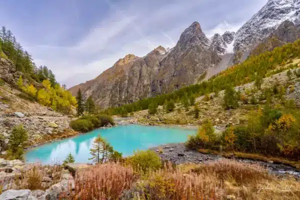 • Lac de la Douche (Écrins) encadré, eaux turquoise et paysages alpins automnaux - Photo décorative par Gaëtan Michel